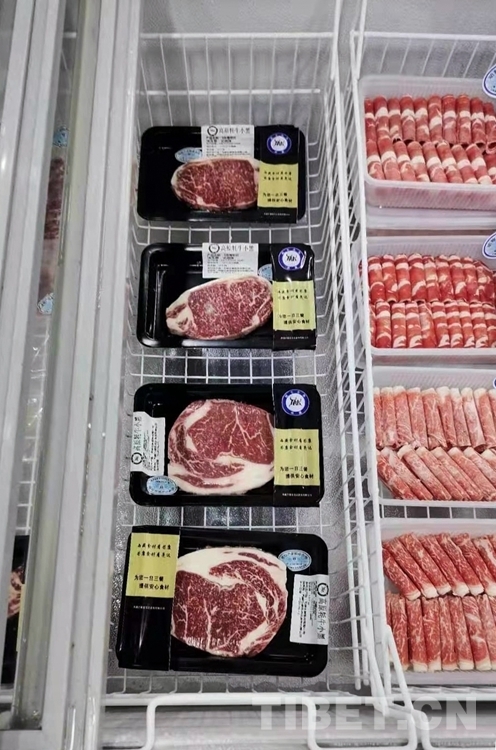 中國西藏網(wǎng)訊 近日,北京廣聯(lián)連鎖超市冷鮮肉柜臺(tái)前,購買牛肉的市民正在認(rèn)真選購來自西藏昌都市芒康縣的高原牦牛肉。