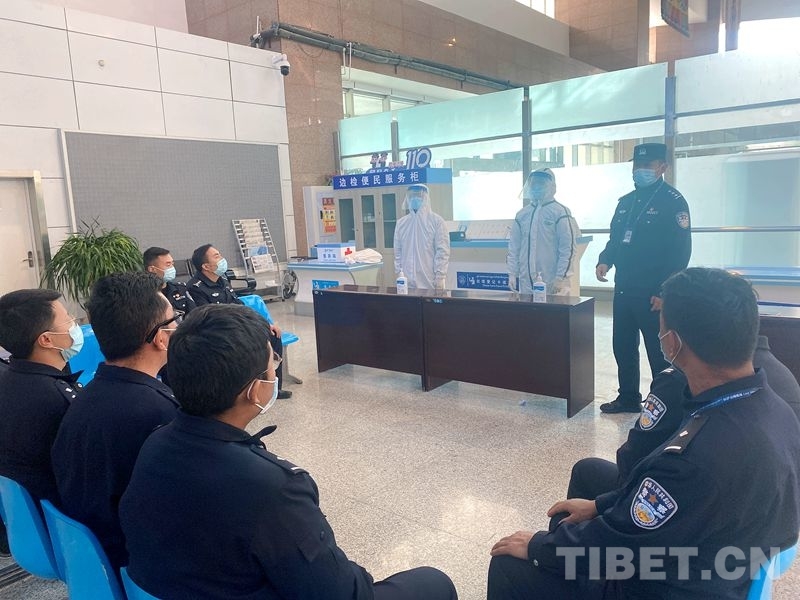 中國西藏網訊 為筑牢出入境邊檢防疫關,幫助新定崗檢查員盡快熟悉執勤現場新冠肺炎防疫防護工作,增強疫情防護意識,提升個人防護能力,近日,西藏自治區拉薩出入境邊防檢查站執勤三隊組織開展穿脫防護服演練。