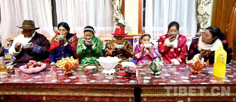 2月10日晚,藏歷新年“古突”夜,在西藏自治區阿里地區獅群河鎮康樂新居易地扶貧搬遷點居住的索南旺久一家,換上了節日的盛裝,準備好傳統美食“古突”,在自家寬敞明亮的房子內,共慶傳統佳節的到來。索南旺久說,因為有黨的好政策,他們一家搬到了寬敞明亮的大房子,現在日子越過越紅火,年味也就更濃了。