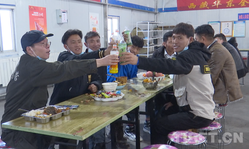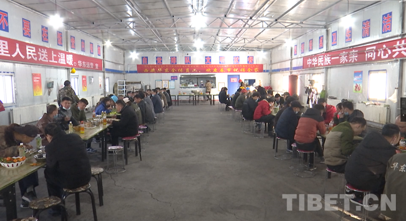 圖為阿里地區熱電聯廠員工在企業食堂集體吃年夜飯 攝影:王佳豪