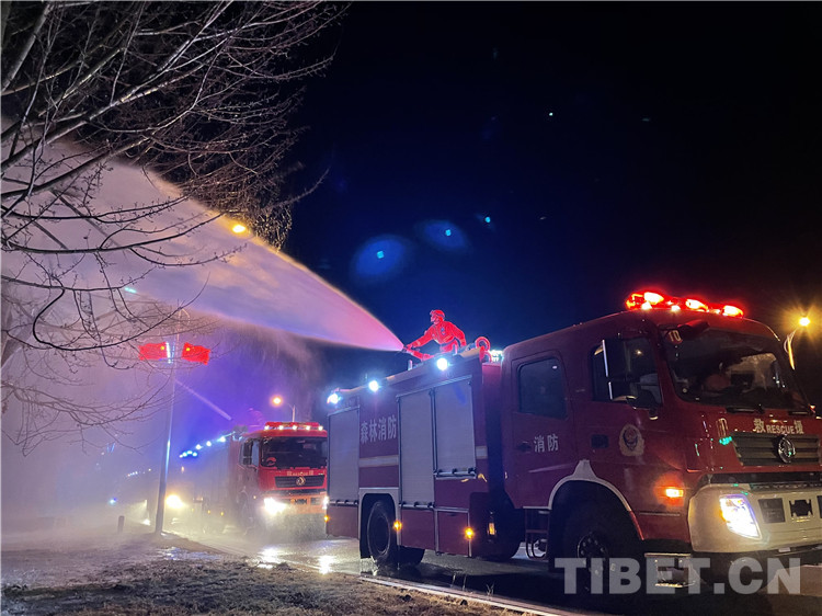 吃完年夜飯,中隊派出巡查小分隊,在各重要道口設立臨時防火檢查站,在加油站周邊派出巡邏小組,并使用消防水車對加油站周邊重點林區進行灑水增濕,確保將火災隱患消滅在萌芽狀態,保障人民群眾度過一個平安、團圓的除夕夜。(中國西藏網 通訊員/郭博文 索朗旺久 圖片由西藏森林消防總隊林芝支隊巴宜區中隊提供)