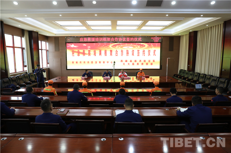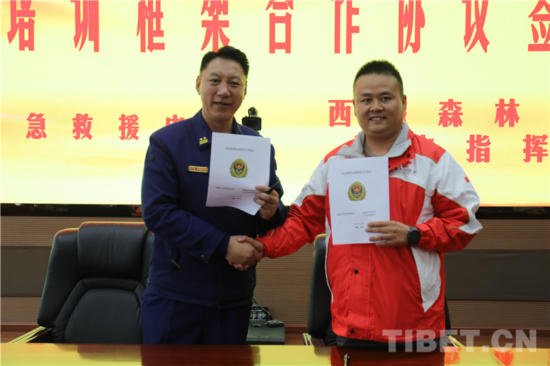 中國西藏網訊 4月1日下午,西藏自治區森林消防總隊與西藏玖玖玖緊急救援中心簽訂培訓框架合作協議。
