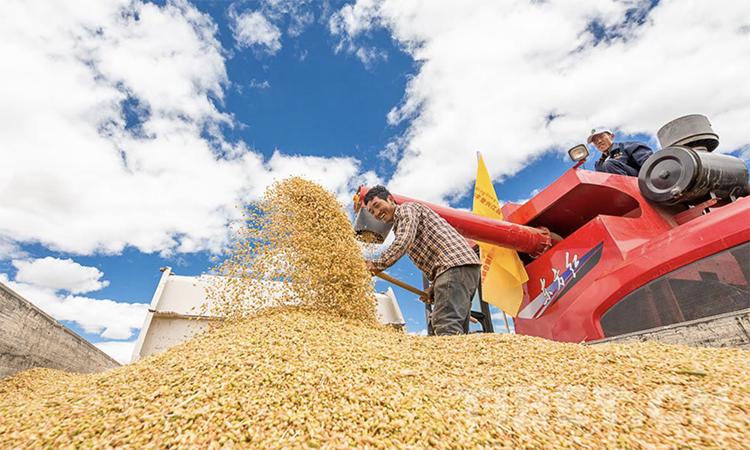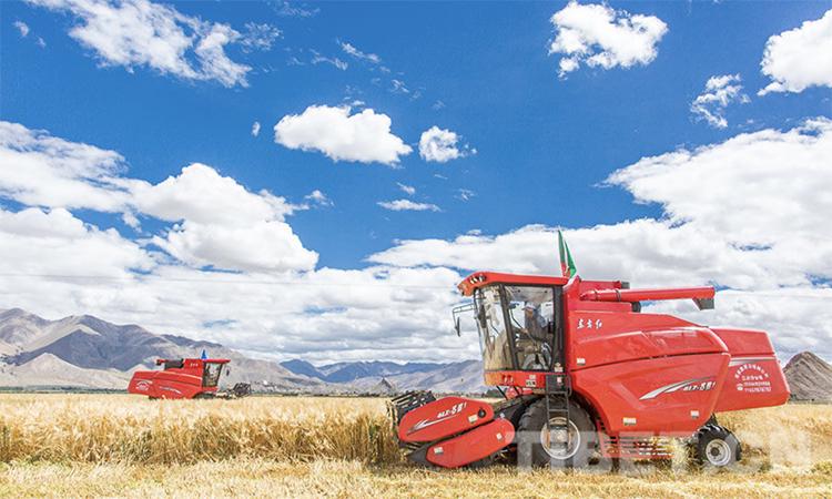 圖為日喀則市江孜縣青稞機械化收割現場 攝影:趙耀