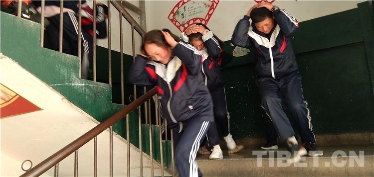 圖為左貢縣中學師生在演練中有序撤離到安全區(qū)域