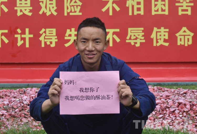 阿媽,兩年了,都沒嘗到您做的酥油茶了,甚是想念,視頻聊天的時候看到您白發漸漸穿梭在黑發之中,皺紋也多了。沒有您的教導、沒有您的呵護、沒有您的容忍,我現在怎能成為為人民服務的逆火戰士。在這個特別的日子里,我想對您說:“阿媽,我愛你”。
