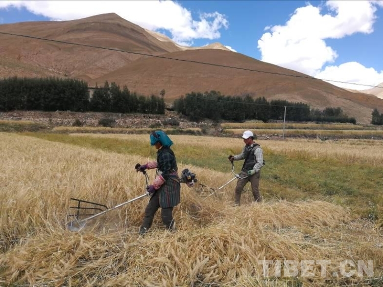 拉木堆村位于西藏自治區(qū)日喀則市定日縣扎西宗鄉(xiāng)西北約6公里,平均海拔4280米,由于地域偏僻和高寒缺氧,長期以來社會生產力較為落后,青稞早已是村民們物質生活的核心內容。2017年的3月份薩央節(jié)期間,村民們身著民族盛裝,載歌載舞,唱著頌歌行繞田頭,祈求著秋天的豐收。為確保秋收順利和提高農業(yè)機械化水平,我們工作隊和村兩委班子經過認真商議,2017年9月初專程前往日喀則為每一戶村民購置了收割機。