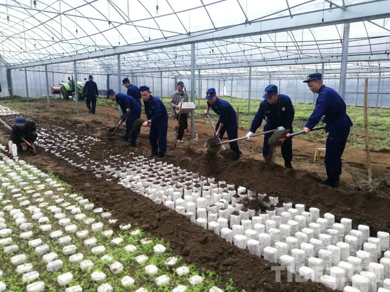 米林縣南伊村位于林芝市南部,全村一共擁有36個大棚,需要種植14萬株靈芝菌包,但是全村38戶167人中,老人小孩居多,青壯勞動力只有70個,勞動力匱乏是南伊村的真實寫照。得知這一情況后,作為黨支部共建單位的米林縣森林消防中隊主動靠上去,組織指戰員走進田間地頭,幫助村民們種植菌包。