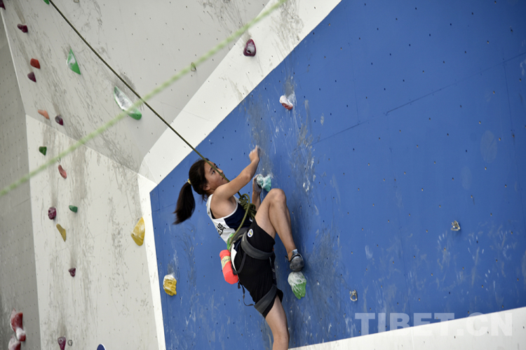 圖為專業(yè)運動員進(jìn)行攀巖表演 攝影:王媛媛