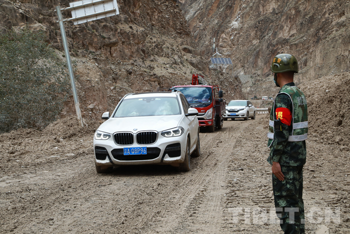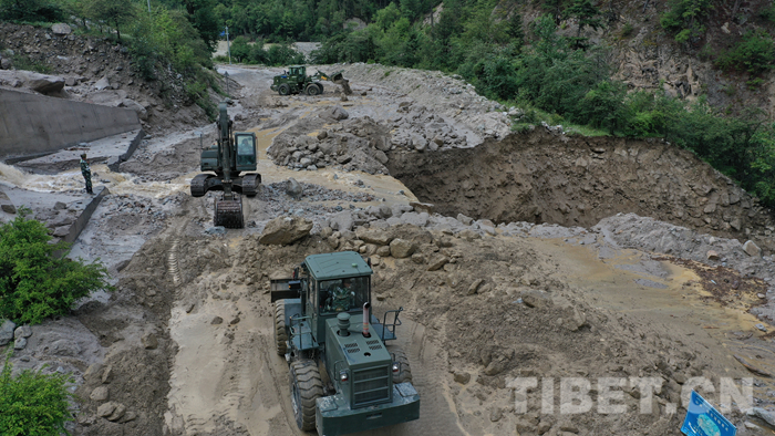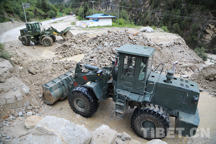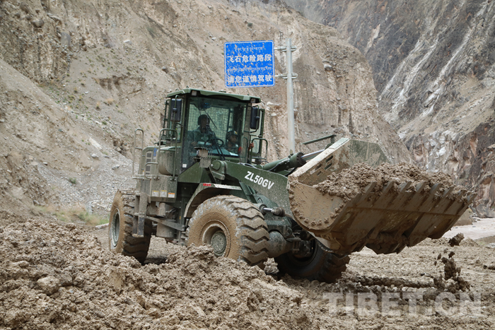 圖為該支隊救援官兵正在對川藏線玉普鄉境內泥石流進行清理