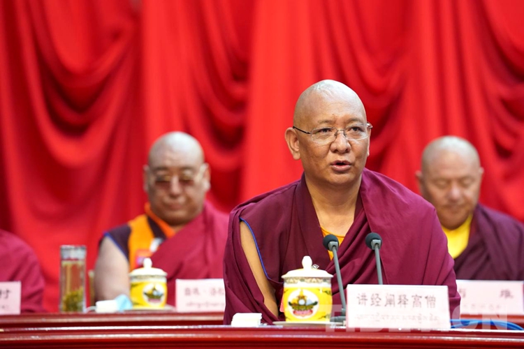 區(qū)黨委常委、統(tǒng)戰(zhàn)部部長,區(qū)政協(xié)黨組副書記、副主席旦科代表西藏自治區(qū)黨委、政府在會上講話時說,2016年以來,中國佛教協(xié)會西藏分會按照中央的部署和區(qū)黨委的要求,每年都舉辦藏傳佛教講經(jīng)闡釋交流會,對藏傳佛教經(jīng)典和教義教規(guī)作出符合時代進步、社會發(fā)展、信眾需要的理論闡釋,并面向信眾進行宣講,取得了重要成果,產(chǎn)生了廣泛的影響,積累了寶貴經(jīng)驗,藏傳佛教中國化邁出了實質(zhì)性步伐。全區(qū)藏傳佛教界代表人士自覺以習(xí)近平新時代中國特色社會主義思想和社會主義核心價值觀為引領(lǐng),弘揚中華優(yōu)秀傳統(tǒng)文化,對藏傳佛教教義教規(guī)作出時代化、大眾化的新闡釋,展示了深厚的宗教造詣、愛黨愛國愛人民領(lǐng)袖的真摯情懷和走中國特色社會主義道路的堅定決心。
