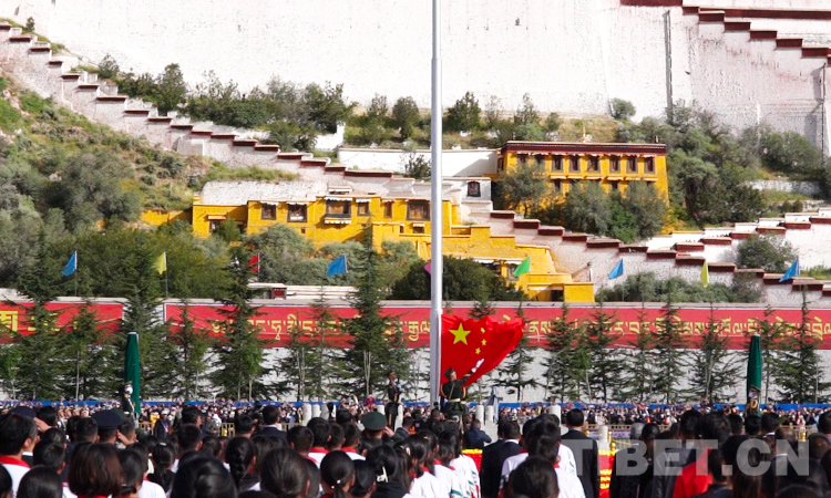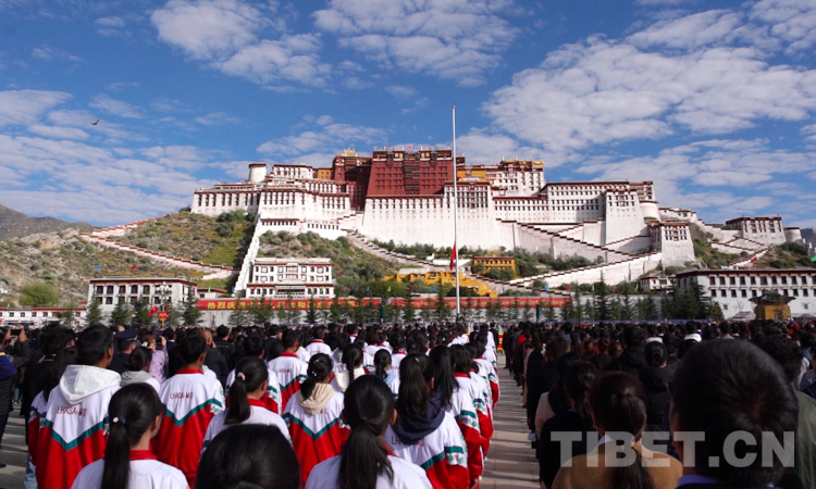 當日,布達拉宮廣場上,漢、藏文“熱烈慶祝中華人民共和國成立72周年”的標語格外醒目,西藏自治區以及拉薩市各族各界代表共1000余人參加了儀式。(中國西藏網 記者/趙耀)