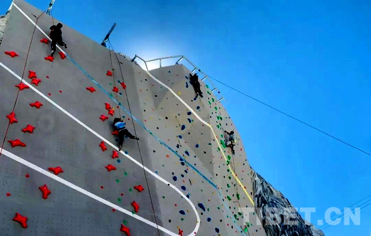 儀式上,來自各地的攀登愛好者參觀了珠峰登山展館,觀看了攀巖表演。日喀則市重點業余體校的80余名學生體驗了攀登運動帶來的刺激和快樂。