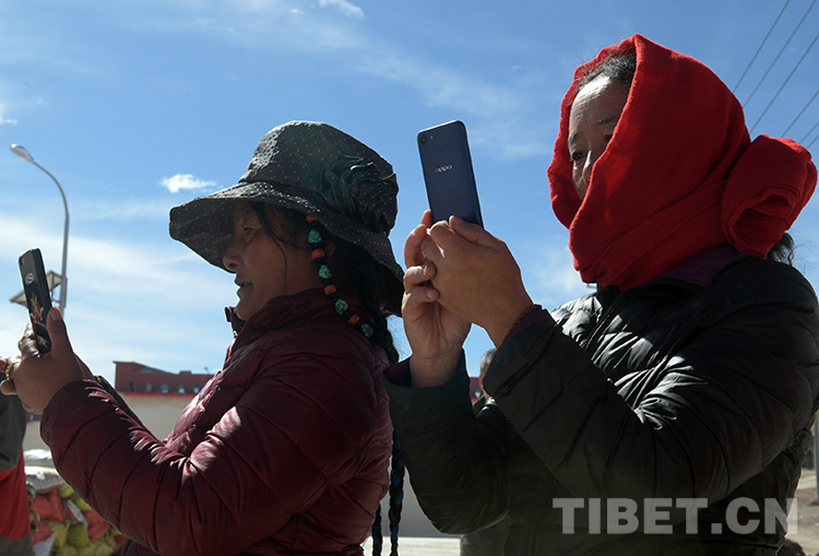 這是聶榮縣色慶鄉帕玉村兩位牧女使用手機了解外面的精彩世界。現在,藏北高原許多牧民群眾使用上了手機(唐召明2019年9月27日攝)