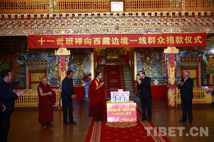 秉承佛教慈悲濟世精神,班禪向來心系蒼生、善信天下。在考取“嘎欽”佛學學位后,班禪決定將社會各界所贈與的鼓勵禮金回饋社會,于10月29日在日喀則市德慶格桑頗章捐贈100萬元,用于幫助西藏邊境一線群眾提升和改善生產生活。西藏自治區黨委常委、統戰部長旦科作為代表接受捐贈。