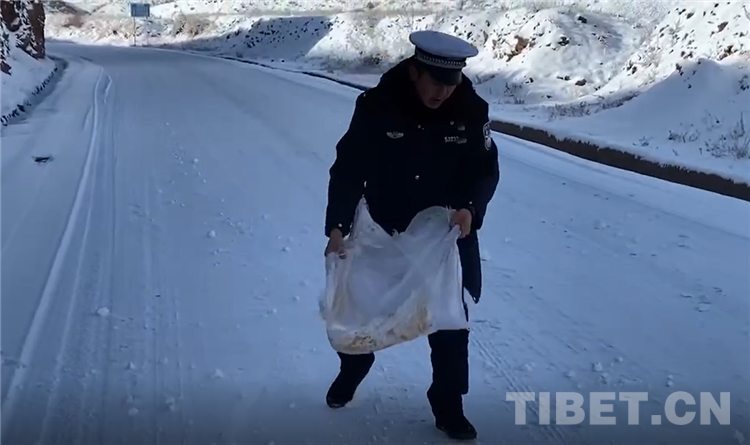 2018年3月,國道317突然遭遇了暴雪天氣,許多群眾和車輛被困在了矮拉山山頂,扎西四郎跟著隊(duì)友們在零下三十多度的惡劣環(huán)境下堅(jiān)守了28天。令扎西四郎印象最深刻的是有一次,因?yàn)檐囎記]辦法通行,隊(duì)長指揮民警帶群眾下山。當(dāng)時(shí),有一位要去拉薩的老奶奶腿腳不方便,她自己根本就沒辦法走動,扎西四郎就和桑珠一起輪流背著老人下山,雖然中間滑倒了幾次,可還是把老人背到了能通車的安全位置,老人為了表達(dá)感激,還專門給他們留下了拉薩的住址和聯(lián)系電話。