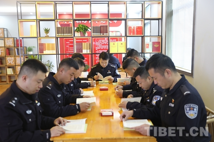 圖為林芝邊境管理支隊機關民警閱讀紅色書籍 攝影:柳春偉