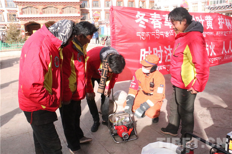 圖為昌都市貢覺縣,消防隊員向群眾宣傳消防知識