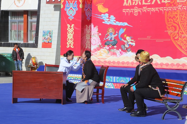 歌伴舞《美麗西藏 可愛家鄉》《小康贊歌》《感恩》訴說著在黨中央的親切關懷下,西藏發生的翻天覆地的變化,抒發了對偉大祖國的無比熱愛和對中國共產黨的忠誠之情,表達了各族干部群眾熱愛祖國、熱愛黨的堅定決心。《洗衣歌》讓臺下臺上一起回顧了歷史,展望了美好的未來。獨唱《長壽六寶》唱出了人與自然和睦相處的美好畫面。相聲《我村的變化》的表演生動有趣,臺下觀眾捧腹大笑的同時,更感受到了黨的各項惠民政策給大家帶來的巨大變化.......