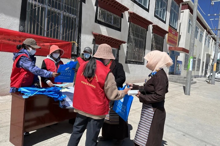 與此同時,拉藏鄉組織干部職工開展了以“推進地下水超采綜合治理 復蘇河湖生態環境”為主題的宣傳活動。活動現場,工作人員身穿紅馬甲,采取懸掛橫幅、設立宣傳展板、發放宣傳單、向過往群眾發放紀念品等方式,圍繞創建國家生態文明高地、加強民族團結、建設美麗西藏、保護水資源,講述國家設立“中國水周”的重大意義。引導群眾樹立節水意識,保護好水資源,堅決遏制用水浪費現象,守護好雪域高原萬水千山,勇當“四個創建”排頭兵。
