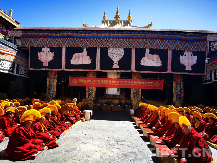 圖為西藏自治區2022年度藏傳佛教學經僧人考核晉升格西拉讓巴學位立宗答辯暨頒證儀式現場 攝影:拉姆
