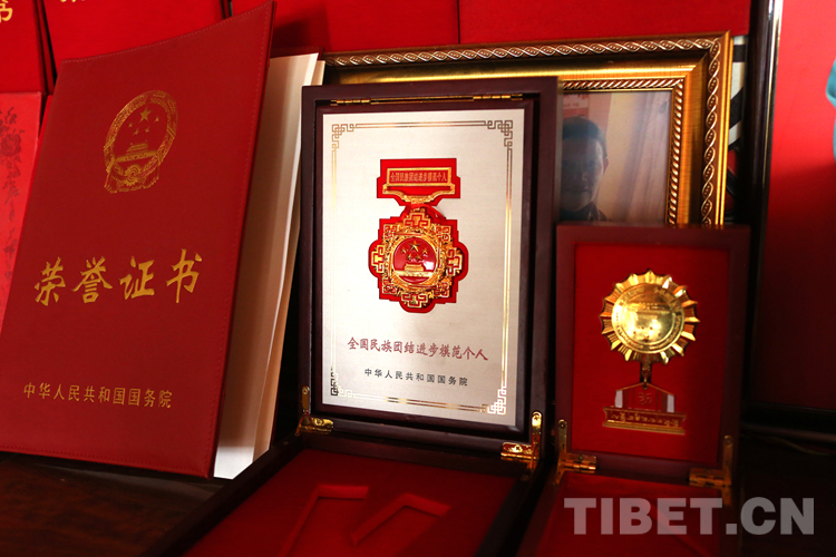圖為楊桂房家中擺放的全國民族團結進步模范個人榮譽證書和獎章 攝影:王佳豪