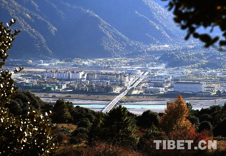 圖為在比日神山生態景區俯瞰林芝市巴宜區