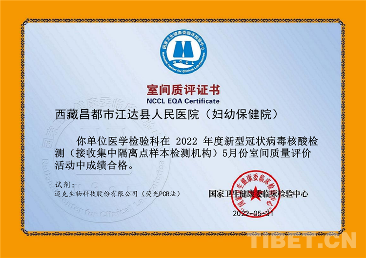 早在2021年11月,江達縣人民醫(yī)院核酸檢測實驗室已經(jīng)通過西藏自治區(qū)臨床檢驗中心的新冠病毒核酸檢測室間質評,并連續(xù)7個月參加自治區(qū)臨床檢驗中心的新冠病毒核酸檢測室間質評,回饋結果均為100分,通過率100%。