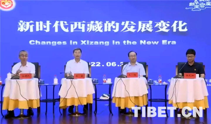 圖為6月22日,中國藏學研究中心二級研究員、學術委員會委員張云(左二),社會經濟研究所所長、研究員扎洛(左三),宗教研究所副所長、副研究員拉先加(右一)參加中國記協舉辦的“新時代西藏的發展變化”新聞茶座 截圖:劉莉