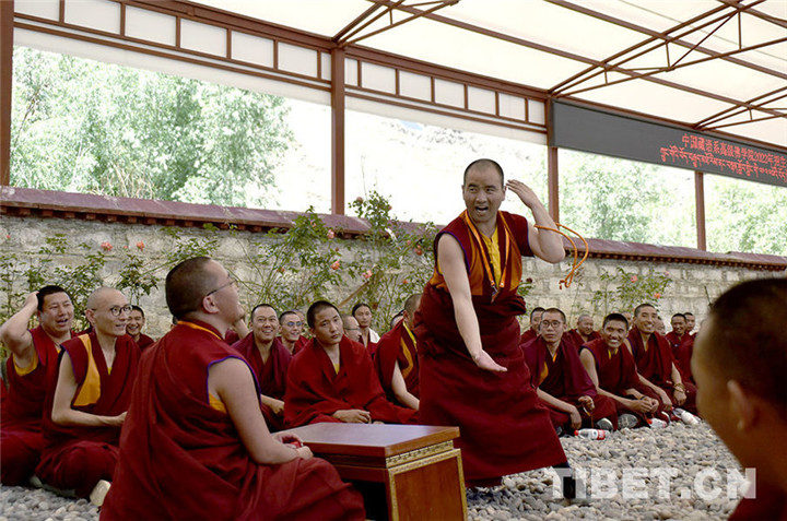 圖為中國藏語系高級佛學院2022級“拓然巴”高級學銜班招生考試西藏考點現場,考僧正在互辯。攝影:王媛媛
