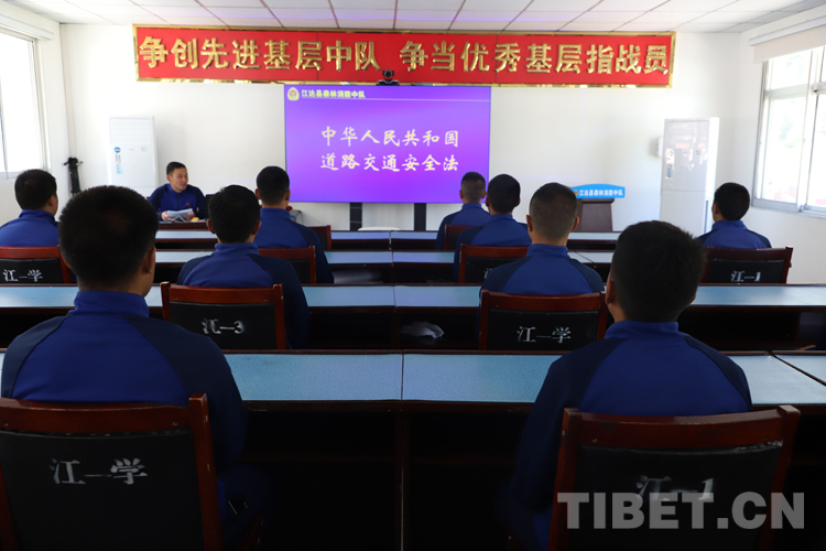 圖為昌都市森林消防支隊(duì)江達(dá)縣中隊(duì)指戰(zhàn)員學(xué)習(xí)《中華人民共和國道路交通安全法》