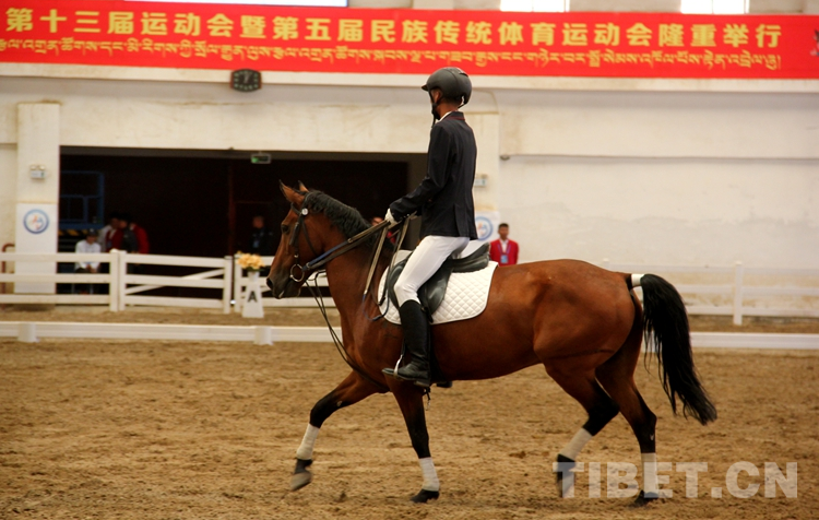 中國西藏網訊 7月15日,西藏自治區第十三屆運動會暨第五屆民族傳統體育運動會拉薩分賽場馬術項目在拉薩開賽。在為期3天的比賽中,來自西藏七市地的7支代表隊、21名騎手將參加個人和團體的盛裝舞步、三項賽、場地障礙三項比賽。
