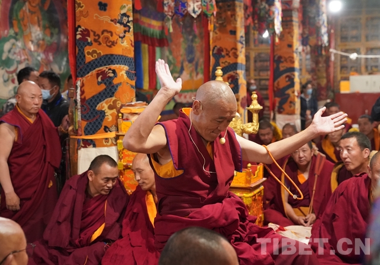 按照傳統宗教慣例,2023年度西藏自治區藏傳佛教學經僧人晉升格西拉讓巴學位夏季預考首先舉行了佛事活動和誦經儀式。之后,來自西藏、云南的13名考僧圍繞《釋量論》《般若學》《中觀學》《俱舍論》《戒學》五部經典內容進行激烈答辯。