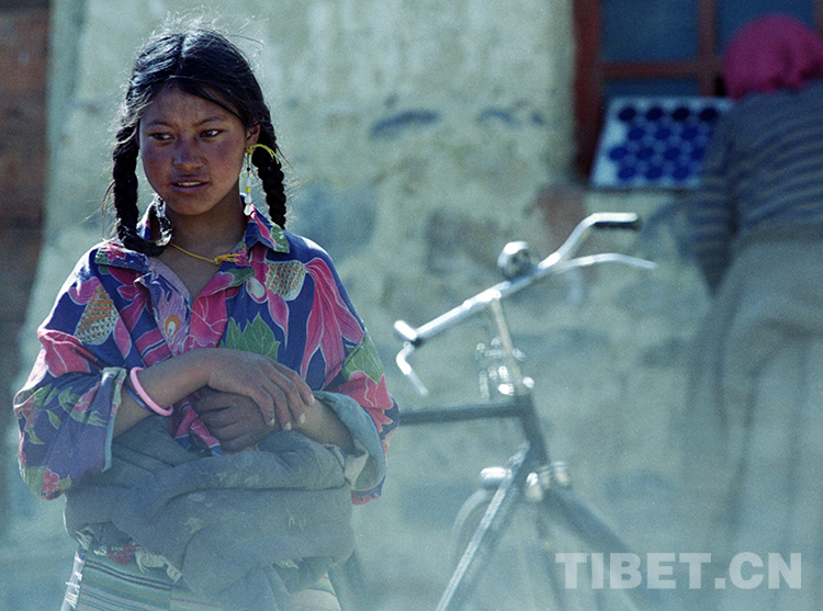 這是藏北尼瑪縣文部鄉過去使用牦牛奶來保護皮膚的藏族婦女(唐召明2001年攝)