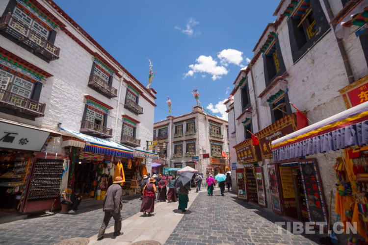 這里是拉薩古城中心,是拉薩經濟、文化、民族手工藝和風土人情的集合地,自古便吸引了大量外地商人來此謀生。千百年間借助繁忙的商貿往來,各民族之間實現深入交往、交流、交融。如今,“老字號”藏裝店、藏餐館、茶館,與特色文創商店、具有西藏特色的新式茶飲連接起八廓街的傳統與現代,延續千年八廓街的繁榮。