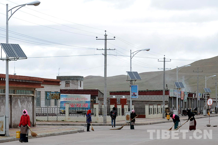 當(dāng)時(shí),經(jīng)過創(chuàng)業(yè)者三十多年的開發(fā)建設(shè),雙湖鎮(zhèn)中心已有了一條筆直寬敞的水泥路,道路兩旁還有漂亮的太陽(yáng)能路燈和垃圾箱,黨政辦公樓、敬老院、職工活動(dòng)中心、幼兒園、普若崗日賓館、加油站等新建筑拔地而起,并建起了大型的太陽(yáng)能光伏電站。