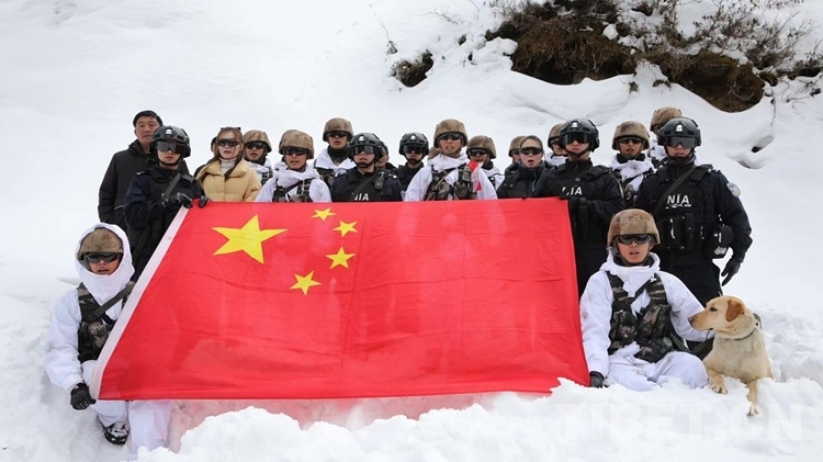 圖為林芝邊境管理支隊南伊邊境派出所與駐地軍警開展聯合巡邏 攝影:馬智慧