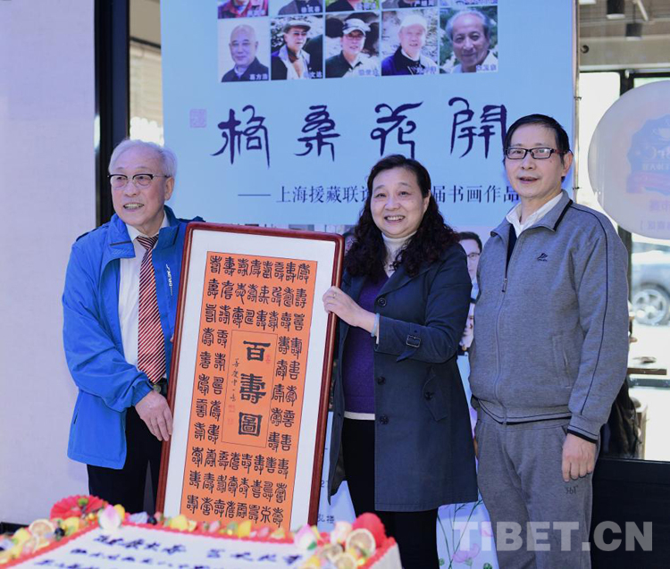 開幕式當(dāng)天,恰逢張先生八十大壽,書畫展組委會(huì)特地送上蛋糕祝賀,徐匯區(qū)書畫協(xié)會(huì)也以一幅《百壽圖》向張先生表達(dá)敬意,祝他“健康長(zhǎng)壽、藝術(shù)長(zhǎng)青”。(中國西藏網(wǎng) 文/葛榮江)