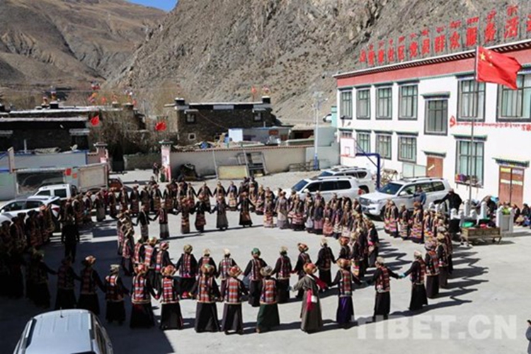 圖為2019年西藏自治區山南市瓊結鎮雪康社區婦女跳果諧慶祝“三八”婦女節
