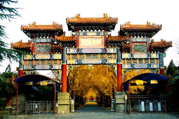 圖為秋陽中的牌樓正門 圖片來源:雍和宮官網