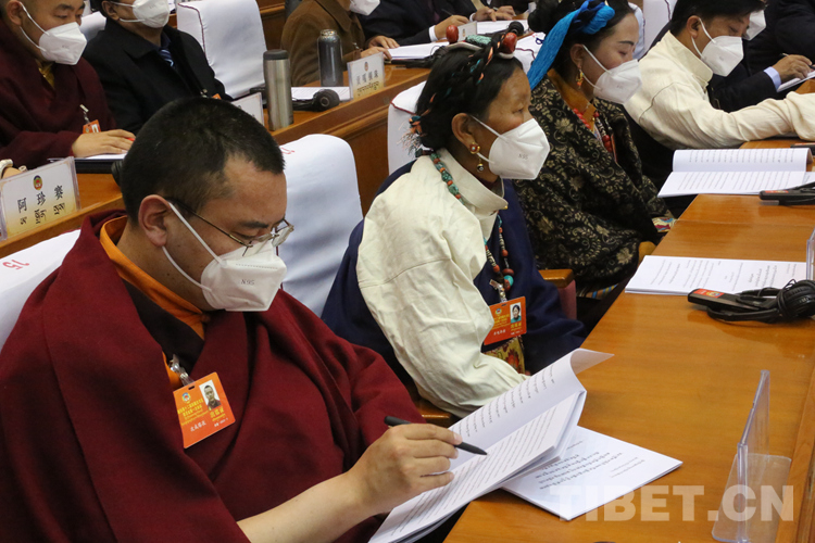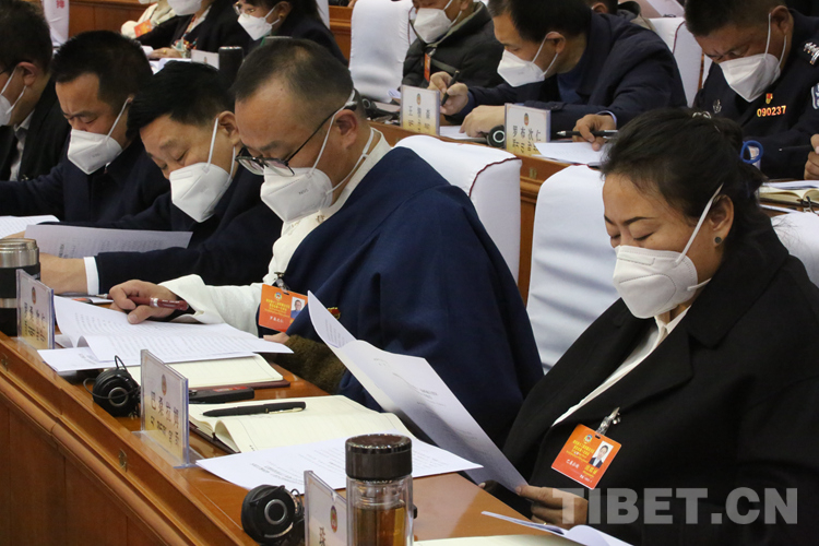 圖為嘎瑪澤登代表政協第十一屆西藏自治區委員會常務委員會向大會報告工作 攝影:王佳豪