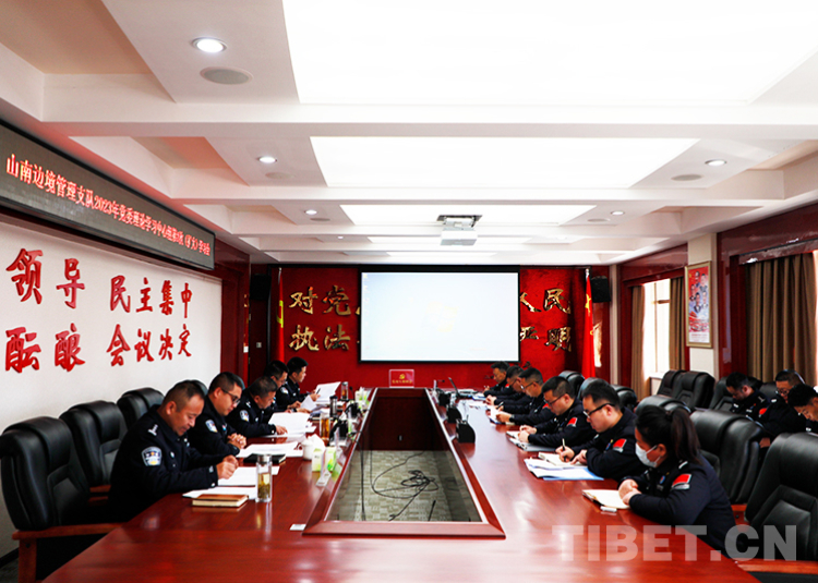 圖為山南邊境管理支隊召開黨委理論學習中心組(擴大)學習會,深入學習兩會精神 鄭琦山 攝