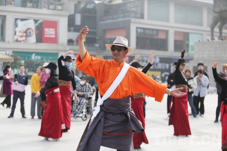 在大唐西市、興慶宮公園等地,沙多等多位藏舞推廣傳承人與西安當地鍋莊舞團隊交流展演,現場氣氛熱烈。