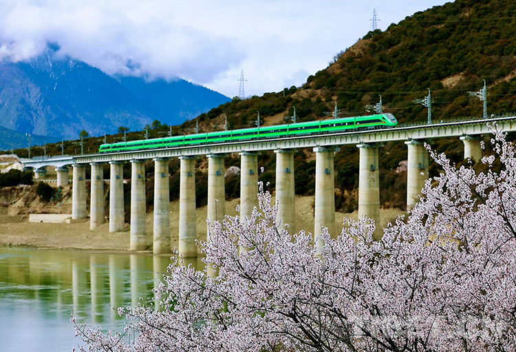 桃花繁茂映高原,如何讓更多游客走進藏東南,去領略最美藏鄉桃花源,鐵路部門想盡了辦法。作為西藏首條也是目前唯一的電氣化鐵路——拉林鐵路,鐵路部門有效釋放這條藏東南地區運輸大動脈的作用,動態優化列車開行模式,做好運能運力的調整配置。林芝各地因海拔、地形、氣候各不相同,桃花綻放的時間從每年三月底持續到四月中下旬,在察隅、波密、朗縣、工布江達、米林、墨脫等地區依次開放,頗有“你方唱罷我方登場”的秩序感。鐵路部門結合這一特點,將拉林鐵路列車開行和“林芝桃花節”深度融合,采取“一日一圖”“一車一策”“一線一策”的列車開行和售票模式,動態分析每日客流數據,有序加開旅客列車。這些科學精準的客運組織和列車開行模式,有效滿足了不同旅客的出行需求,讓八方來客來西藏林芝的賞花之旅更加方便、更加快捷、更加高效。