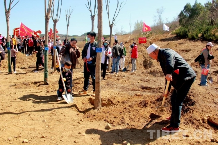 圖為多杰與北穆家峪村的回族老爺爺一起在同心林中種下了一棵粗壯的國槐 攝影:劉莉