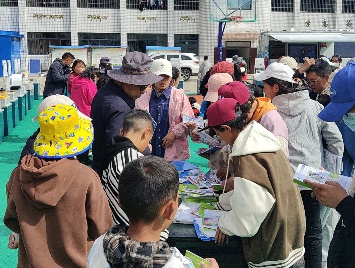圖為日喀則市科學技術(shù)協(xié)會以科普大篷車進校園活動為契機,聯(lián)合亞東縣委宣傳部、縣科技局在縣中學舉辦的“推進全民閱讀 共創(chuàng)書香珠峰”主題宣傳活動現(xiàn)場