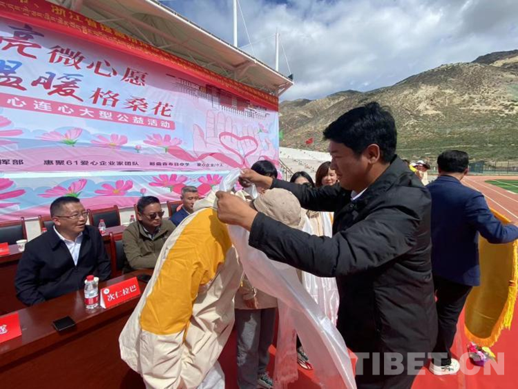 中國西藏網訊 6月19日,浙江金華市惠聚61愛心企業家團隊萬里送愛心,在西藏森布日中學舉行“點亮微心愿·溫暖格桑花”公益活動。