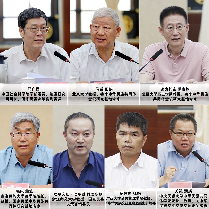 中國社會科學院學部委員邢廣程、北京大學教授馬戎(回族)、復旦大學教授達力扎布(蒙古族)、青海民族大學教授先巴(藏族)、浙江師范大學教授吐爾文江·吐爾遜(維吾爾族)、廣西大學教授羅樹杰(壯族)、中央民族大學教授關凱(滿族)等7位學者發(fā)言,就中華文明五大特性與鑄牢中華民族共同體意識、在實事求是基礎上堅定中華民族的文化自信、中華文明的統(tǒng)一性與包容性、青藏高原是中國古代文化“場”中重要區(qū)域之一、建設中華民族現代文明與中華民族共同體是文化潤疆的重要方向、壯族文化的形成發(fā)展是中華文明五大特性的生動體現、中華民族現代文明與中華民族共同體建設等多方面暢談學習體會。大家一致認為,習近平總書記在文化傳承發(fā)展座談會上發(fā)表的重要講話,闡明了中華文明的突出特性,揭示了“兩個結合”的深刻內涵,強調了建設中華民族現代文明的重要原則。中華文化是各民族優(yōu)秀文化的集大成,各民族共同創(chuàng)造了偉大悠久的中華文明,中華文明的突出特性在各民族文化中都有體現,國土不可分、國家不可亂、民族不可散、文明不可斷是所有中華民族成員的共同信念。大家一致表示,要以習近平總書記重要講話精神為引領,牢牢把握中華文明的五大突出特性,深入開展理論創(chuàng)新,多出高質量研究成果,為中華民族現代文明建設和中華民族共同體建設作出積極貢獻。