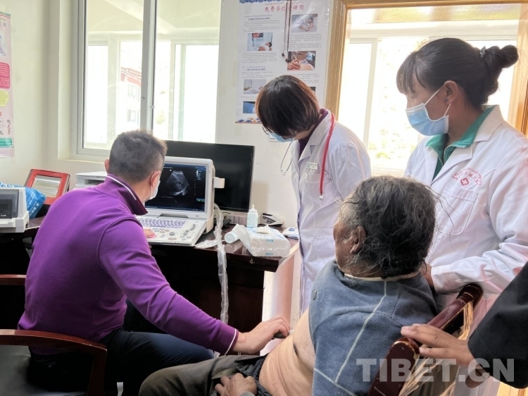 “彩超呢?”北京上地醫(yī)院院長張宇在衛(wèi)生院工作人員的帶領(lǐng)下來到衛(wèi)生院二樓為75歲的桑旦江措老人進(jìn)行胸部彩超檢查,“霍主任(中國中醫(yī)科學(xué)院望京醫(yī)院心內(nèi)科主任)懷疑他有心衰,患者不能平臥睡覺、走路氣喘、雙腿腫脹,所以我想通過超聲印證一下,昨天我們也篩查了一些有心衰跡象的群眾,平時大家覺得氣喘是小問題,忍忍就好了,實(shí)際上它還是很嚴(yán)重的,要及時治療?!睆堘t(yī)生告訴記者,“藏族群眾對骨科和胃腸道的關(guān)注度更高,但是心臟、血管、糖尿病等不會立馬表現(xiàn)出來的慢性病不太重視,這樣往往會錯過最佳的治療時間。所以我們應(yīng)該通過講座和培訓(xùn),一方面要增強(qiáng)群眾的健康意識,另一方面也要培養(yǎng)當(dāng)?shù)赜玫蒙稀⒘舻米〉募夹g(shù)型人才?!?/p>