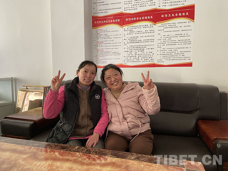 2001年,老公從格爾木坐長途汽車去拉薩。那時不是夫妻關系,卻彼此認識。他在拉薩打拼幾年,主要是酒店經營這一塊。2006年,青藏鐵路通車那一年,她坐上火車去拉薩投親,開始在剛堅飯店打工,后來又換了幾家酒店。由于都在同一行業,之前又認識,張保英與先來的他很快情感升華,成為一家人。