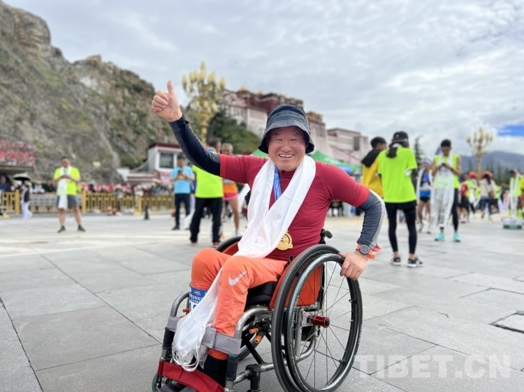 “馬拉松是一項極限運動,這里是海拔最高的馬拉松比賽,我是本屆比賽殘疾人運動員中歲數最大的。沿途的風景很美,后勤保障也做的很到位,希望有更多的殘疾人像我一樣走出來。”來自河南洛陽的殘疾人運動員商長斌今年61歲,完賽后他臉上洋溢著難以掩飾的笑容接來工作人員向他敬獻哈達和獎牌。